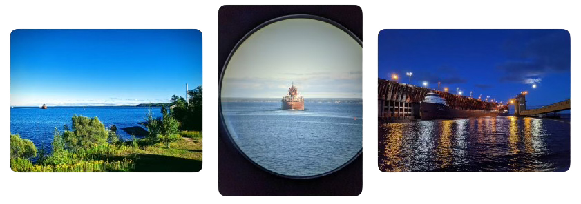 I got to watch Great Lake freighter, the Honorable Kaye E. Barker come into the still-in-operation ore dock at Presque Isle where she was filled with taconite pellets from local mines. You can find live updates on which ships are near Marquette here! Feel free to nerd out and start a new hobby like my old English professor! Her nerdy horizon shots of the freighters coming in and when there are âfreighter partiesâ are a delight. Also, make sure to remember the old trick where you can hold your cell phone camera up to the binoculars you are obviously carrying.