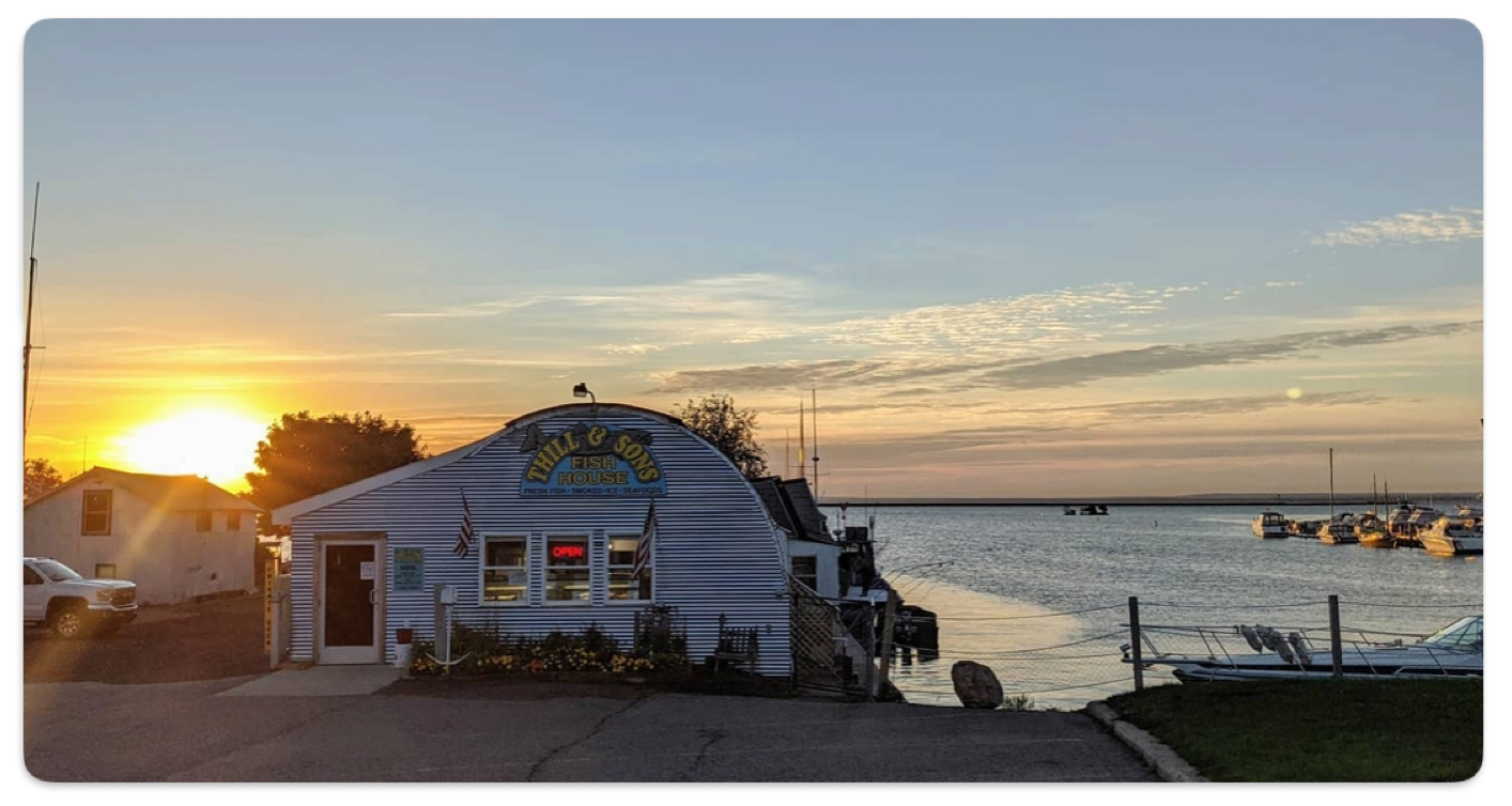 Got some smoked whitefish at Thillâs, the family-owned fish house, prominently placed next to Lower Harbor in downtown. Itâs a protein packed snack that will keep you satiated and topped up for adventure. Beautiful place to watch a sunrise come up, too.